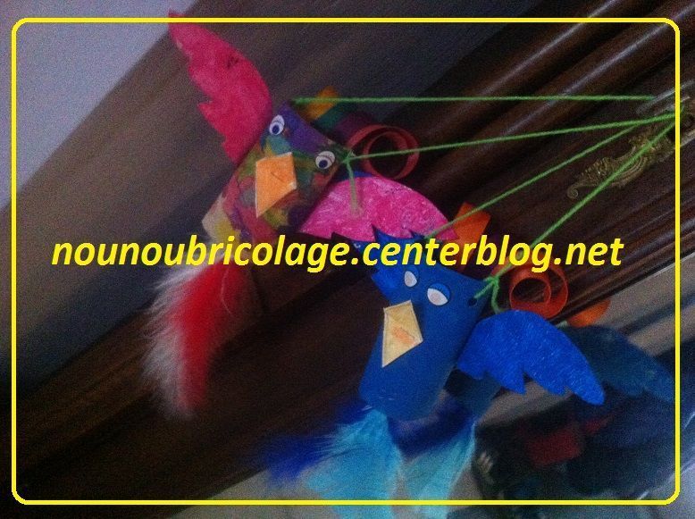 après avoir regardé le film RIO avec les enfants, ils ont eu envi de réaliser de jolis perroquets