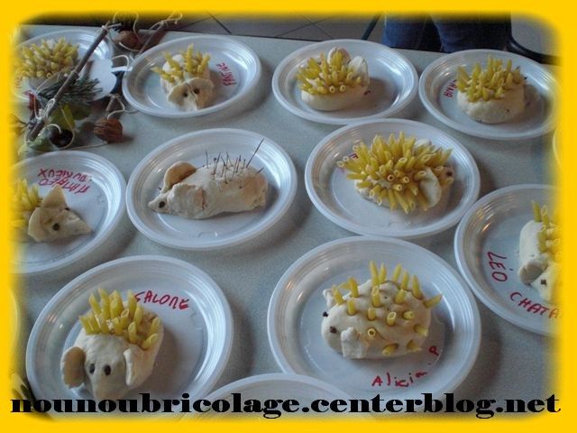 il faut de la farine, du sel, et de l'eau, des pates alimentaires ou des épines de sapin pour les piquants du hérisson, clous girofle pour les yeux.
