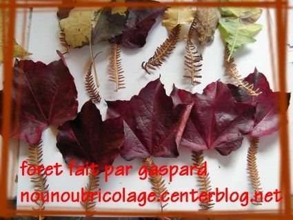 gaspard bienot 6 ans a réalisé une foret d'automne avec des feuilles ramassées dehors